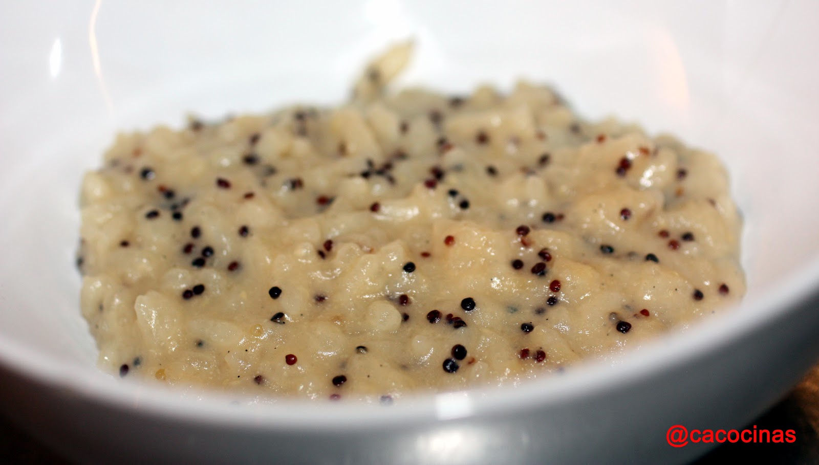 retirar parte de leche y disolver la harina de quinoa. (con ella lo que se logra es dar textura al arroz con leche sin sobrecocer el arroz)