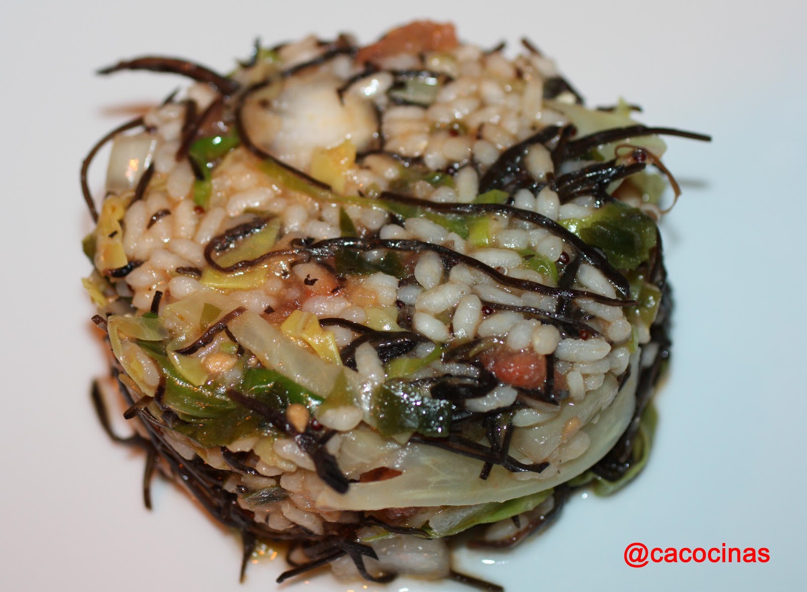 Se añaden en la sartén al final las algas (en pequeña cantidad para que no quede