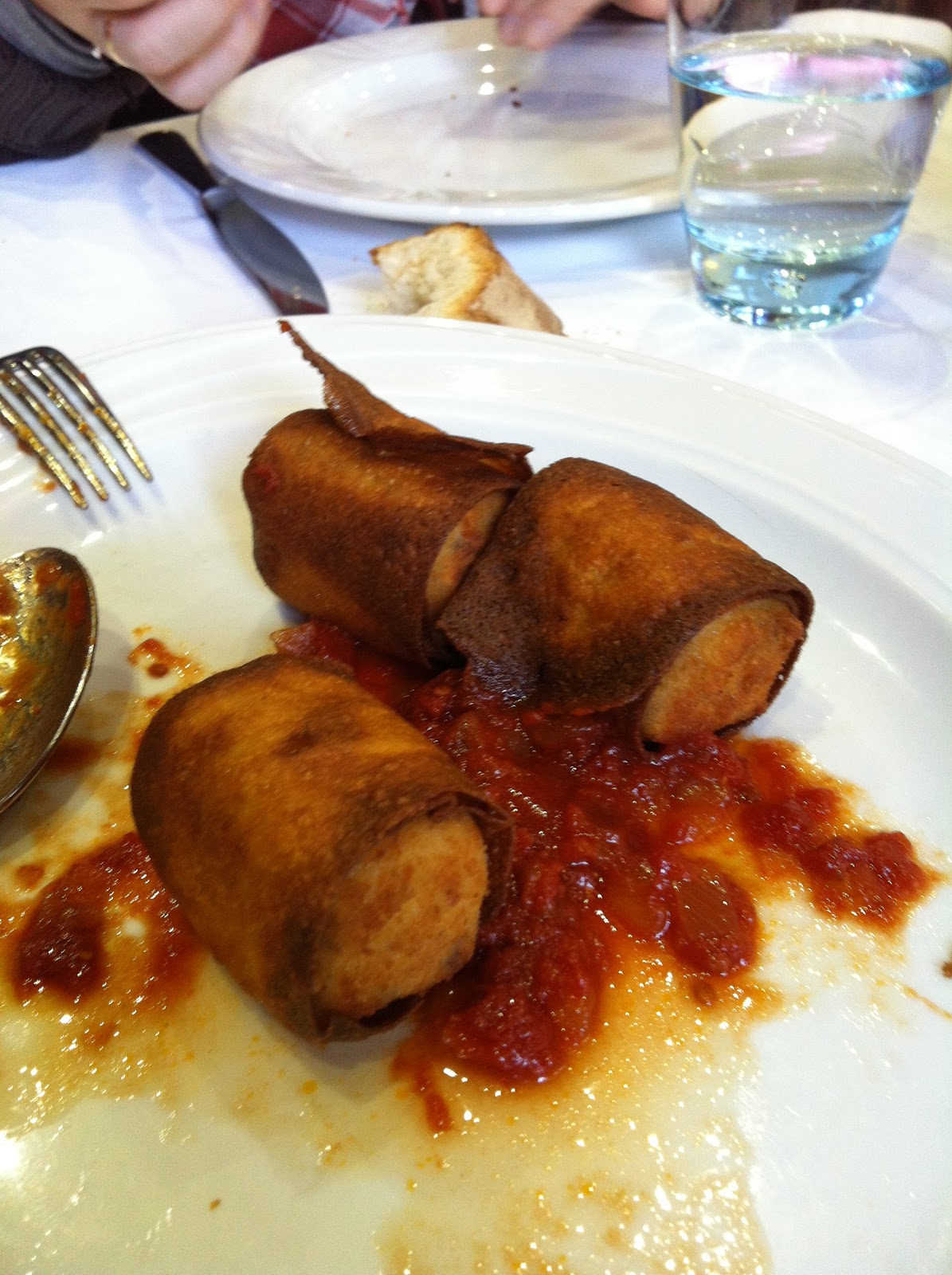 De primero y como cosa que me parecio curiosa, nos pusieron unas croquetas crujientes de carne de buey, croqueta realizada de un modo mas o menos convencional, la cual envuelven en una pasta brick, luego la frien y la sirven acompañada con una salsa de tomate casera.